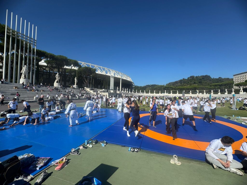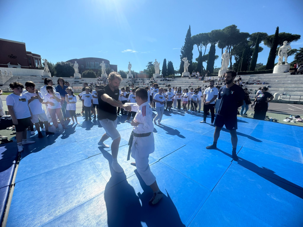 Settembre 2025 – Intensa, coinvolgente ed emozionante: così si può riassumere la partecipazione del Toukon alla Settimana Europea dello Sport, European Week of Sport, in programma ogni anno dal 23 al 30 settembre. L’iniziativa che quest’anno festeggia i suoi 10 anni, è stata lanciata dalla Commissione Europea nel 2015 per promuovere lo Sport, gli stili di vita sani e attivi e conseguentemente il benessere fisico e mentale dei cittadini della Comunità Europea. Anche quest’anno, il Toukon ha risposto presente, portando il suo entusiasmo e la sua professionalità al fianco della FIJLKAM – Federazione Italiana Judo Lotta Karate Arti Marziali, nella spettacolare cornice dello Stadio dei Marmi “Pietro Mennea” di Roma. Le giornate sono state animate da dimostrazioni, lezioni aperte e momenti di confronto con atleti di alto livello e tecnici qualificati alla presenza di migliaia di bambini e ragazzi. In particolare il karate, una tra le discipline centrali della FIJLKAM, ha regalato emozioni al pubblico presente, con esibizioni, tecniche dinamiche e inclusive, che hanno messo in luce i valori educativi e formativi dell’arte marziale, alla presenza anche di atleti paralimpici. Presente una rappresentativa del Toukon karate-do, che ha saputo distinguersi per energia, preparazione e spirito sportivo. Un’occasione unica per condividere la passione per le arti marziali e promuovere la pratica del karate e del judo come strumenti di crescita personale, benessere fisico e integrazione sociale.